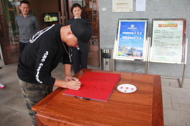 前天,一場秋雨為人們帶來久違的清涼,景崗山老師和周曉鷗老師的到來卻點燃了所有人的熱情!在進入博物館前,兩位老師依次在“簽字簿”上寫下自己的名字!